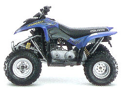 Warning!: Polaris ATVs with engine sizes larger than 90cc may not be ridden by anyone under 16 years of age. ATVs with 89cc engines may not be ridden by anyone under 12 years of age. ATVs with 49cc engines may not be driven by anyone under 6 years of age. All riders under 16 should only ride with adult supervision. All riders should take a safety course. For safety and training information see your dealer or call Polaris at 1-800-342-3764. ATVs can be hazardous to operate. For your safety, always wear a helmet, eye protection and protective clothing. Never ride on public roads, always avoid paved surfaces; Never carry passengers. Never engage in stunt driving. Riding and alcohol/drugs don't mix. Avoid excessive speeds. Be particularly careful on difficult terrain. Remember, ATV riding is more fun when you play by the rules.