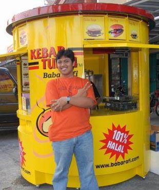A: Awalnya berasal dari hobi. Kebetulan hobi saya makan. Pada saat ada kesempatan berlibur ke Qatar, salah satu negara di Timur Tengah, saya tortegun menyaksikan populernya makanan bernama kebab itu. Pada saat saya mencoba, wah, ini rasanya kok enak banger. Dan muncullah ide untuk membawa menu makanan kebab itu ke Indonesia. Saya mulai mencobanya di Surabaya lima tahun yang lalu dengan menggunakan satu bush gerai gerobak. Dan Alhamdulillah ternyata sekarang telah berkembang lebih dari 352 outlet di lima puluh kota diseluruh Indonesia.